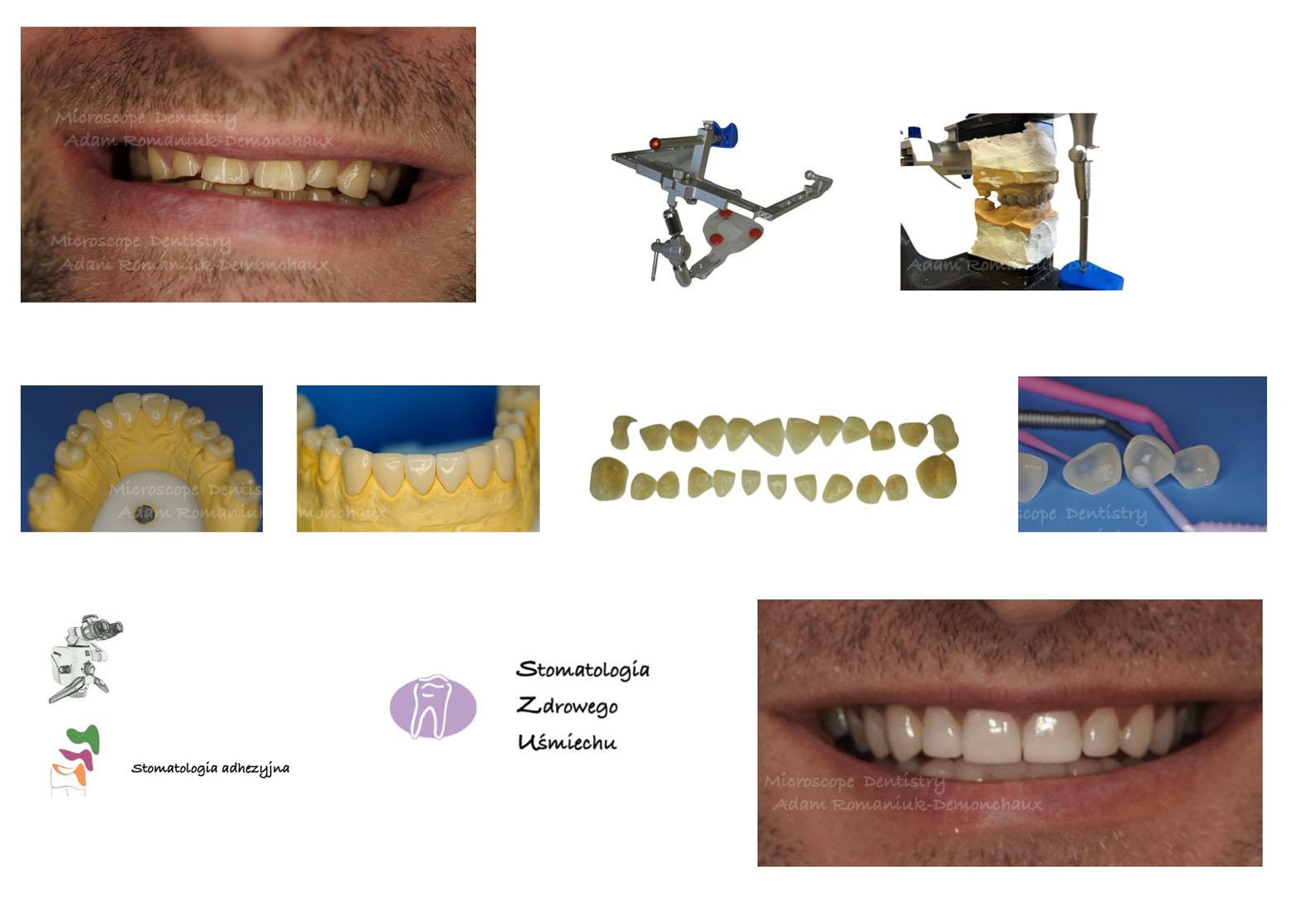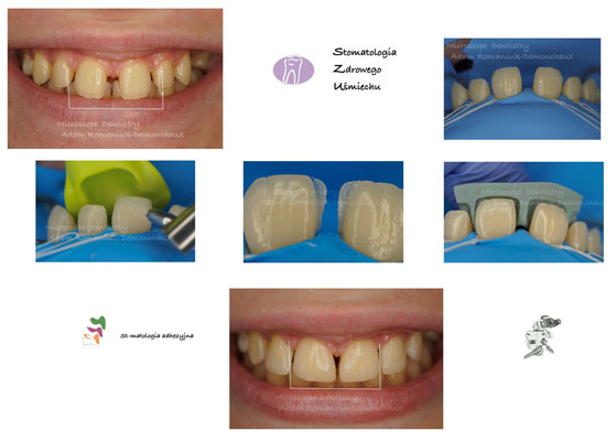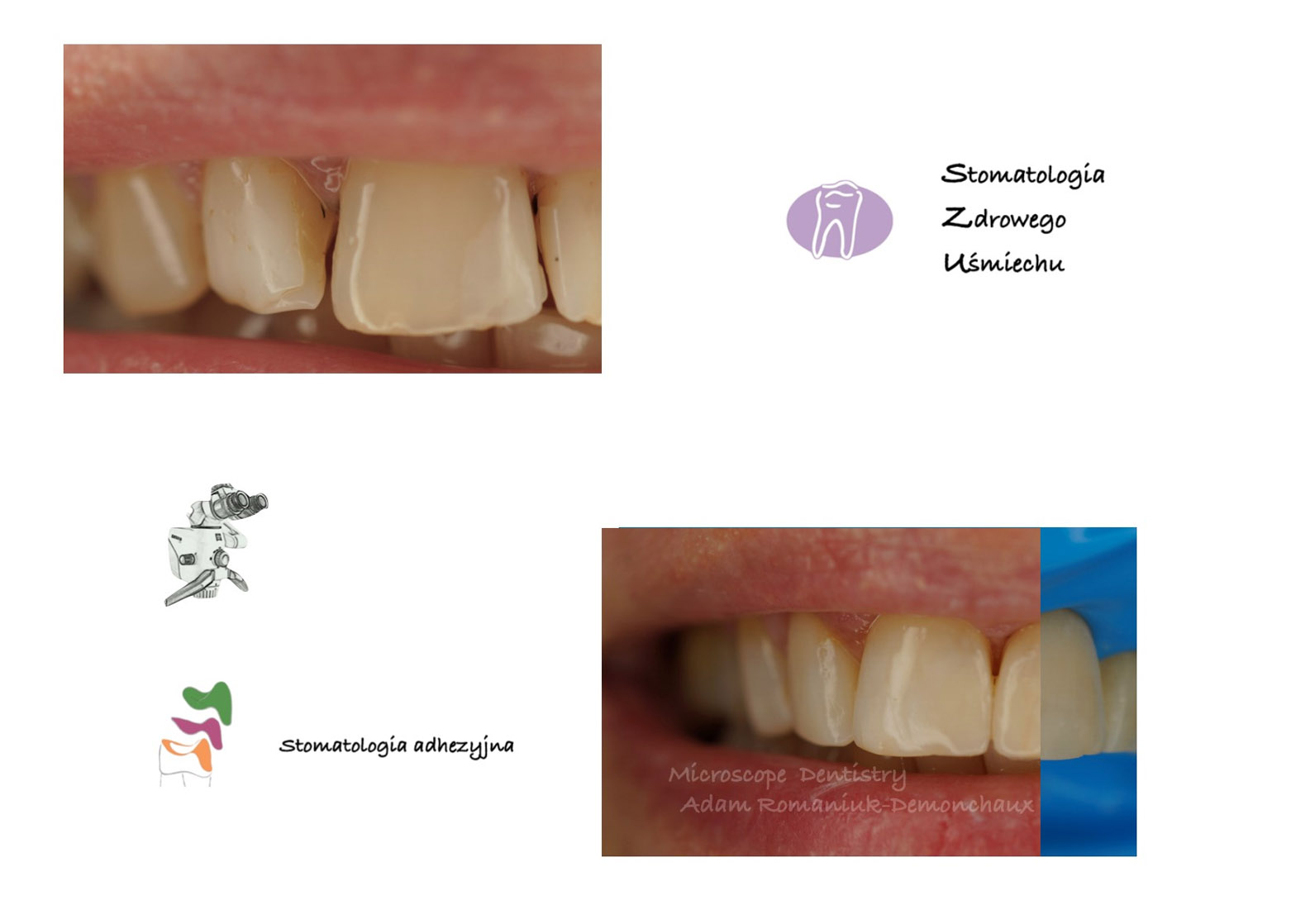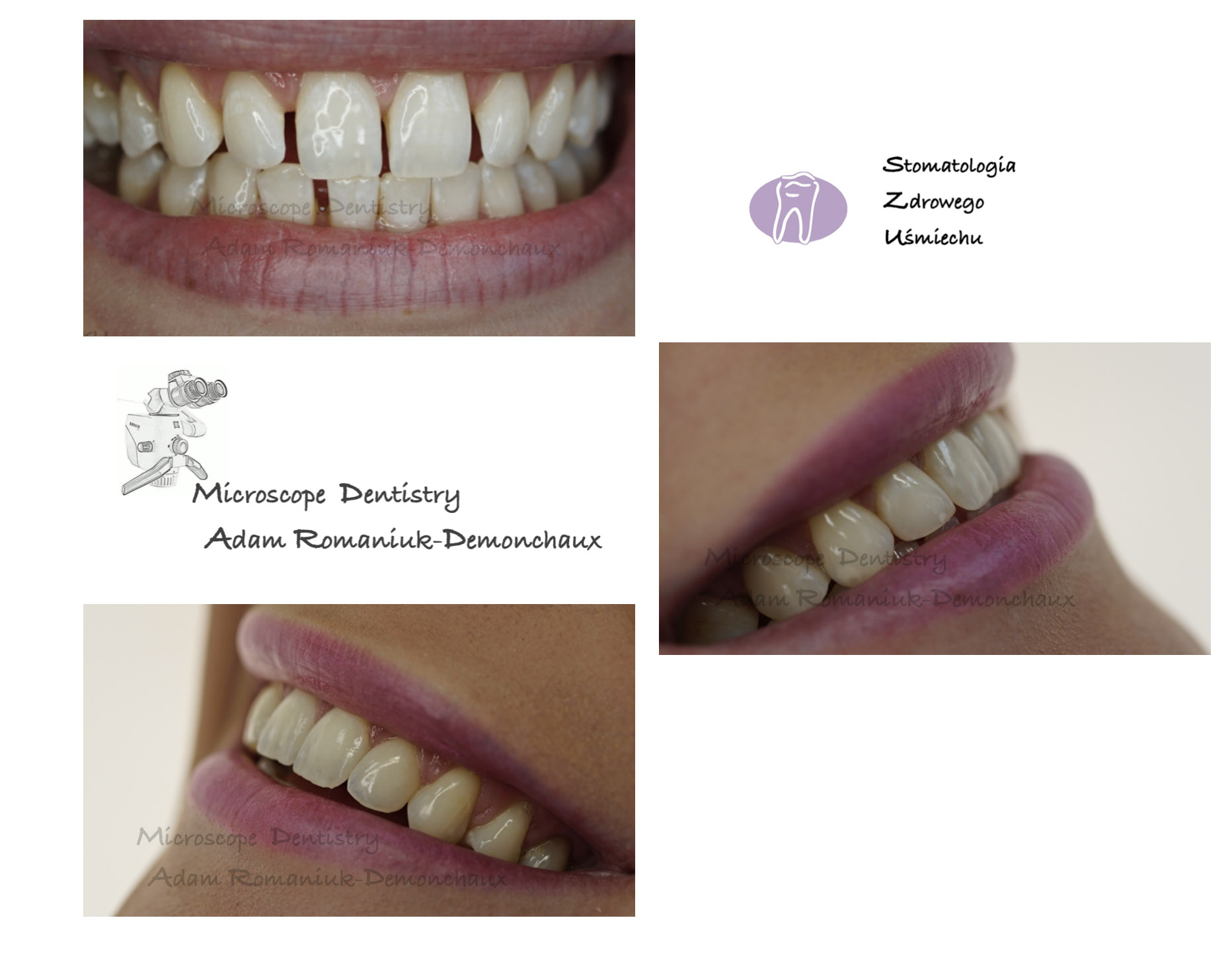 Prezentowany przypadek kliniczny to rekonstrukcja estetyczna kształtu zębów wykonana z zastosowaniem nowoczesnych materiałów kompozytowych. Wszystkie procedury odbywają się z zastosowaniem mikroskopu.