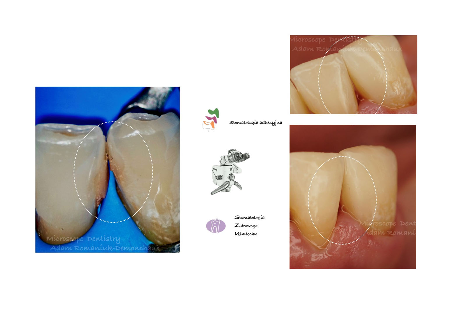 Izolacja pola zabiegowego, praca z zastosowaniem mikroskopu zabiegowego oraz zastosowanie odpowiednich formówek sekcyjnych wraz z dobrze dobranymi klinami umożliwia leczenie rekonstrukcyjne zachowując idealny profil powierzchni stycznej.