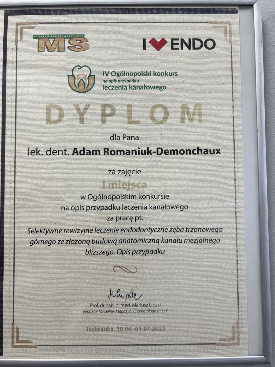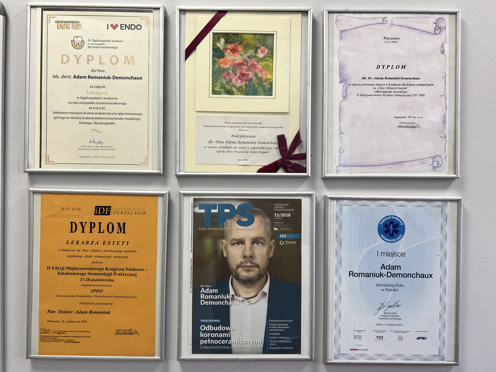 - I miejsce w konkursie podczas Międzynarodowej Wystawy Dentystycznej IDF w 2008 roku
